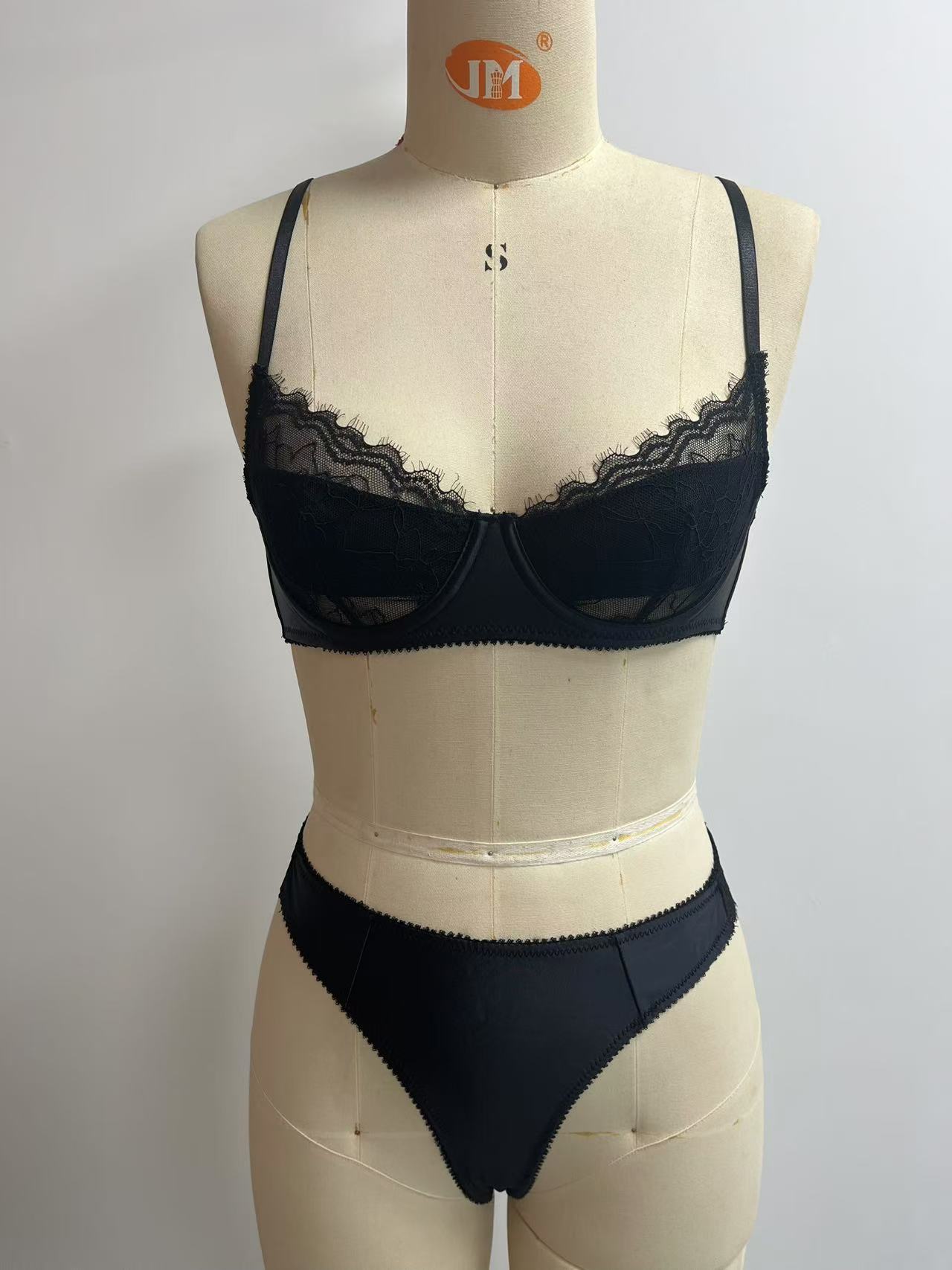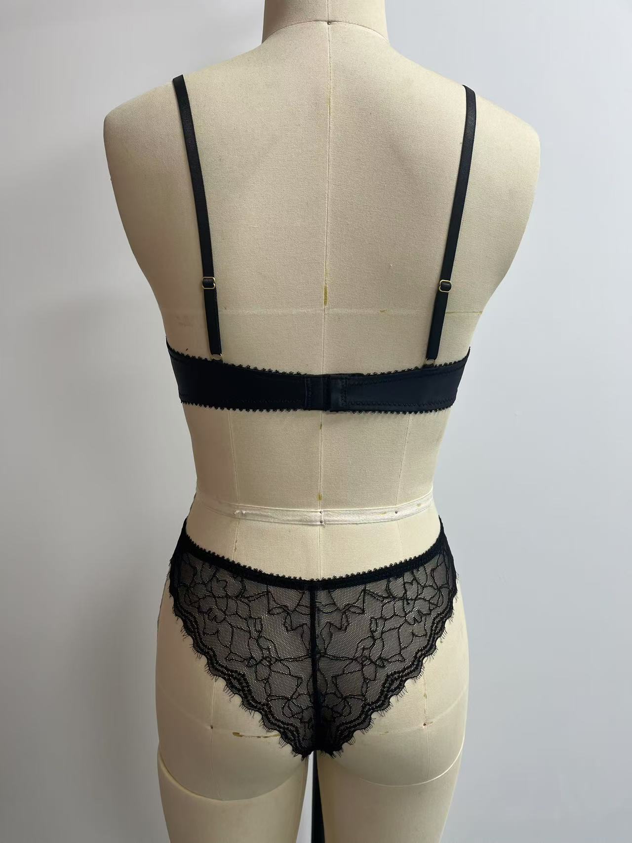 Contrast-color Patchwork Ultra-thin Comfort Bra And Underwear Set