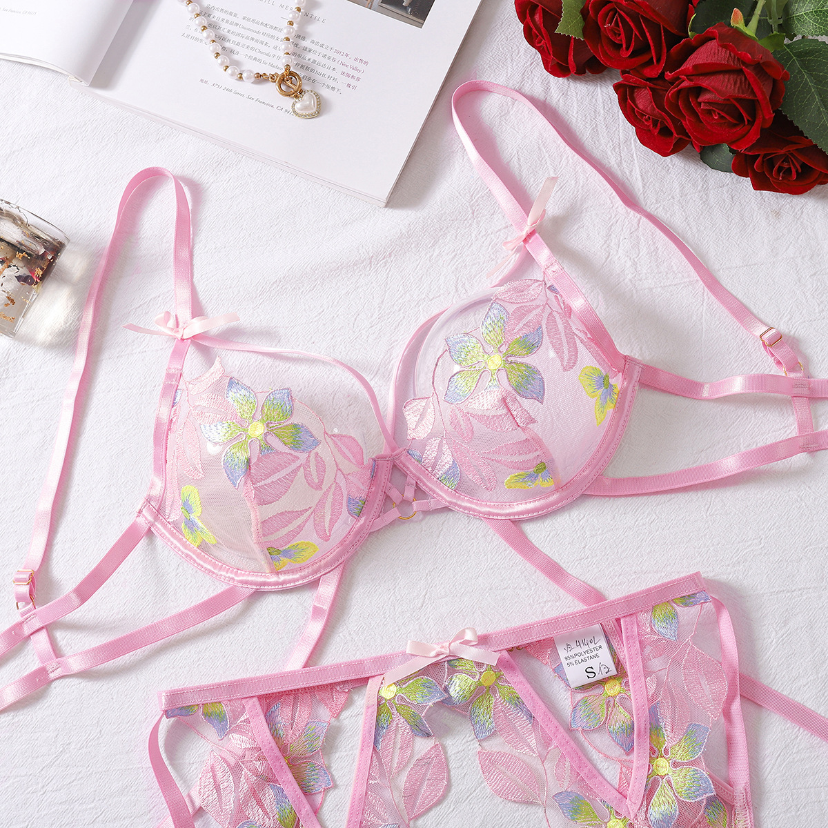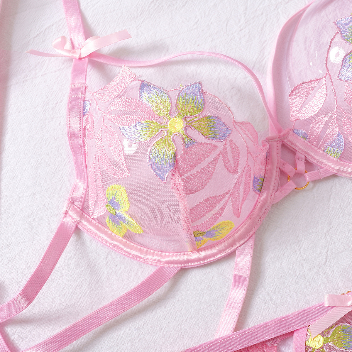 Embroidery Push Up Sexy Cutout Bra Set